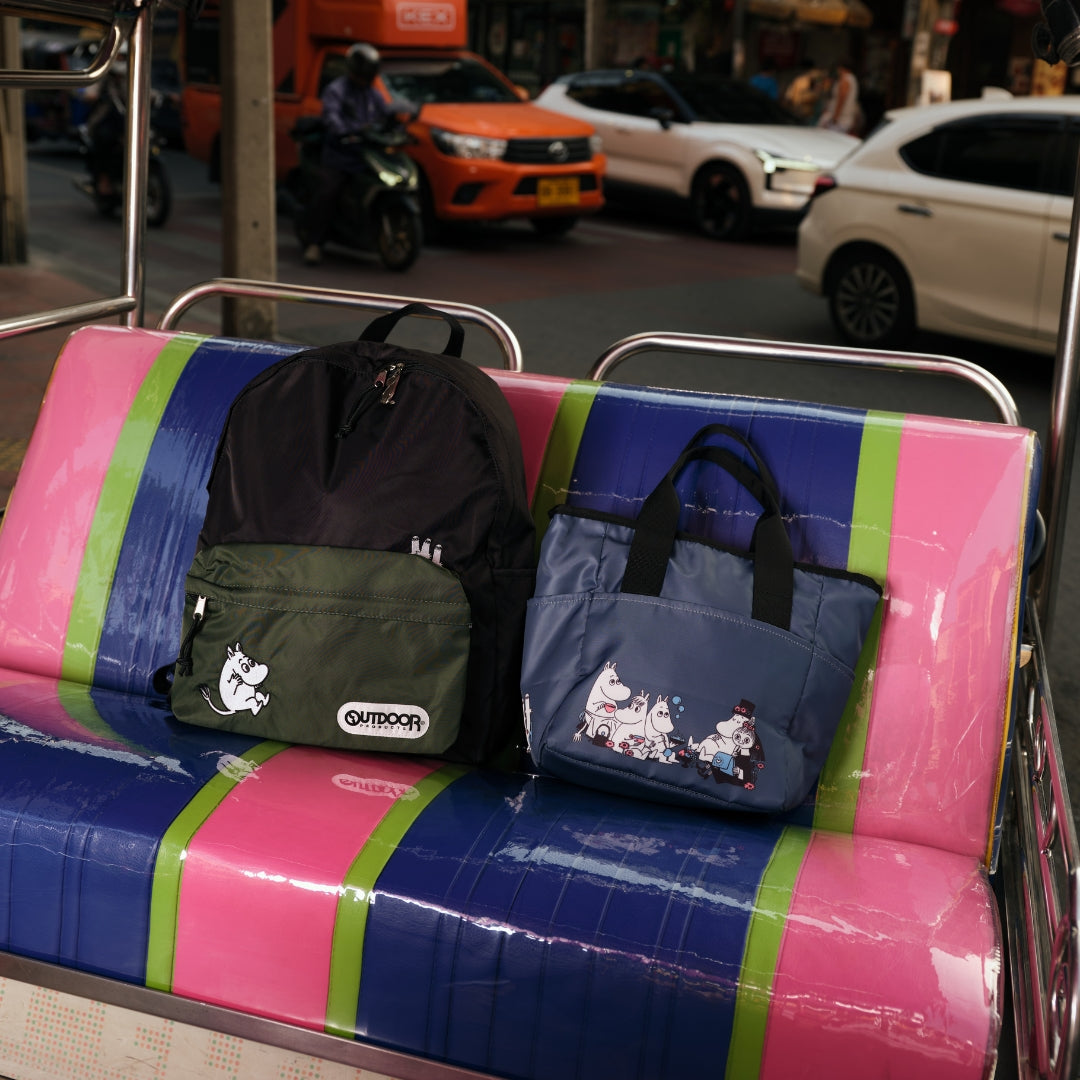 กระเป๋าดีไซน์จากโมเมนต์น่ารักของ มูมินและสนอร์กเมเดน (Snorkmaiden) ที่นั่งพักผ่อนเคียงข้างกัน สื่อถึงบรรยากาศอบอุ่นของชีวิตประจำวันในหุบเขามูมิน ผสานความน่ารักของคาแรกเตอร์เข้ากับสไตล์เอาต์ดอร์ได้อย่างลงตัว ให้ความรู้สึกสบาย ๆ แบบนอร์ดิก