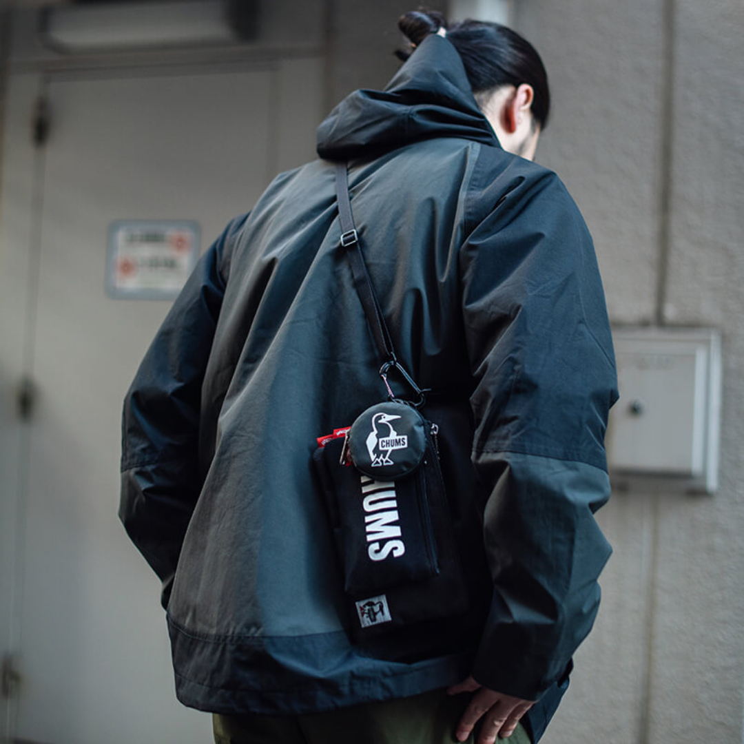 ซีรีส์กระเป๋า CHUMS สุดคลาสสิกที่ผสมผสานสเวตเชิ้ตที่มู้ดสบาย ๆ และไนลอนที่ใช้งานได้หลากหลายเหมาะกับการใช้งานหนัก ทั้งนี้ยังใช้สารแปรรูป "Asahi Guard E-SERIES" ที่มีคุณสมบัติกันน้ำ กันน้ำมัน และสิ่งสกปรกบนพื้นผิวสเวตเชิ้ต ทำให้ทนทานต่อน้ำและสิ่งสกปรก เหมาะสำหรับการเดินทางและทำกิจกรรมกลางแจ้ง
