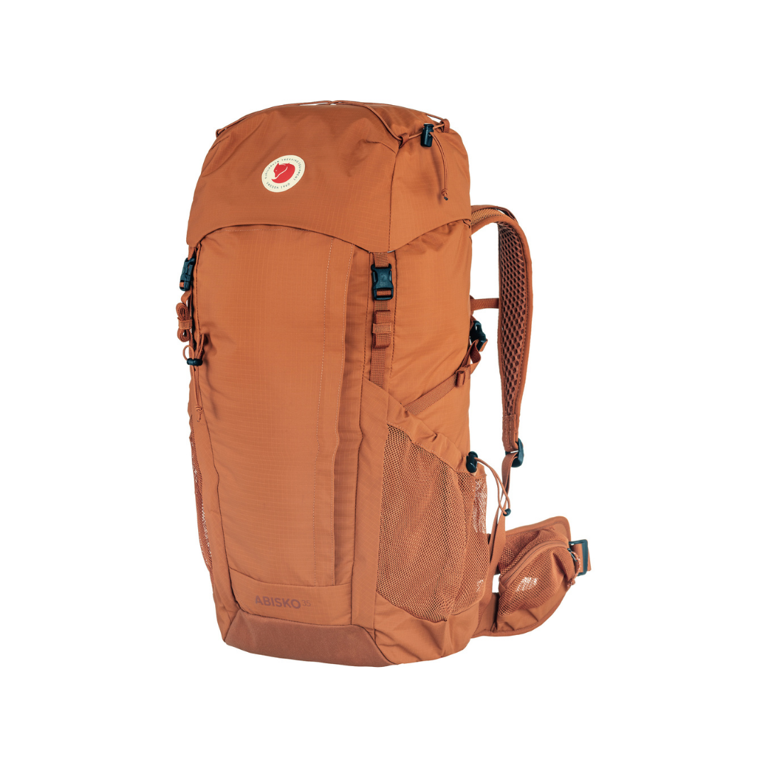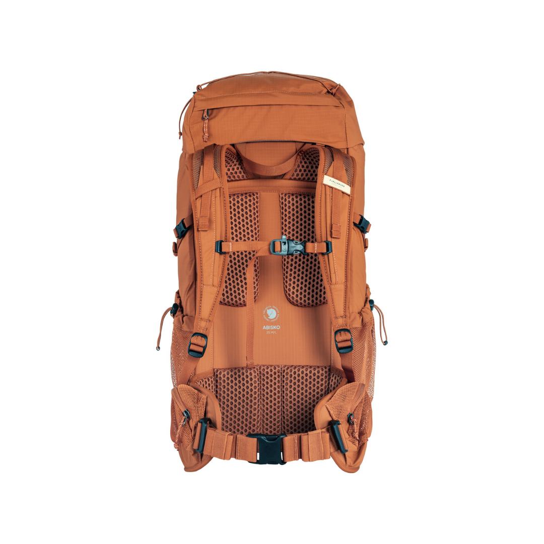 Abisko Hike 35 M/L เป็นเป้เอนกประสงค์ สำหรับการเดินป่าระยะสั้น และการเดินแทรกกิ้งแบบเบาๆ ตัวเป้ทำจากไนล่อนรีไซเคิล 100% (100% recycled nylon) ตัวเป้สามารถปรับได้ตามความยาวหลังได้ แผงด้านหลังระบายอากาศได้ดี รวมถึงสายสะพาย และสายคาดเอวพร้อมกระเป๋าตาข่าย มีช่องใหญ่ที่เปิดได้จากด้านบน พร้อมเชือกรูด ใส่ของได้ง่าย และช่องซิปใส่ของด้านหน้าเปิดได้กว้าง หยิบของสะดวก ด้านบนมีเชือกยืดที่สามารถรัดข้าวของด้านบนเป้ได้พร้อมกระเป๋าซิปตาช่ายด้านใน ด้านหน้าเปิดด้วยซิปหน้าพร้อมตีนตุ๊กแก ทำให้เปิดได้กว้าง ด้านในช่องหลัก 1 ช่อง พร้อมช่องสอดยางสำหรับของเล็กๆน้อยๆ พร้อมช่องตาข่ายเล็กด้านใน ด้านข้างมีช่องตาข่ายขนาดใหญ่ 2 ช่องที่เหมาะกับการใส่ขวดน้ำ ในส่วนของสายคาดเอวมีช่องกระเป๋า 2 ช่อง ด้านหน้ามีที่เกี่ยวไม้เท้าเดินป่า หรือขวานจามน้ำแข็ง มีช่องใส่หลอดของถุงใส่น้ำเดินป่า มาพร้อมที่คลุมกระเป่ากันฝน (Rain Cover)