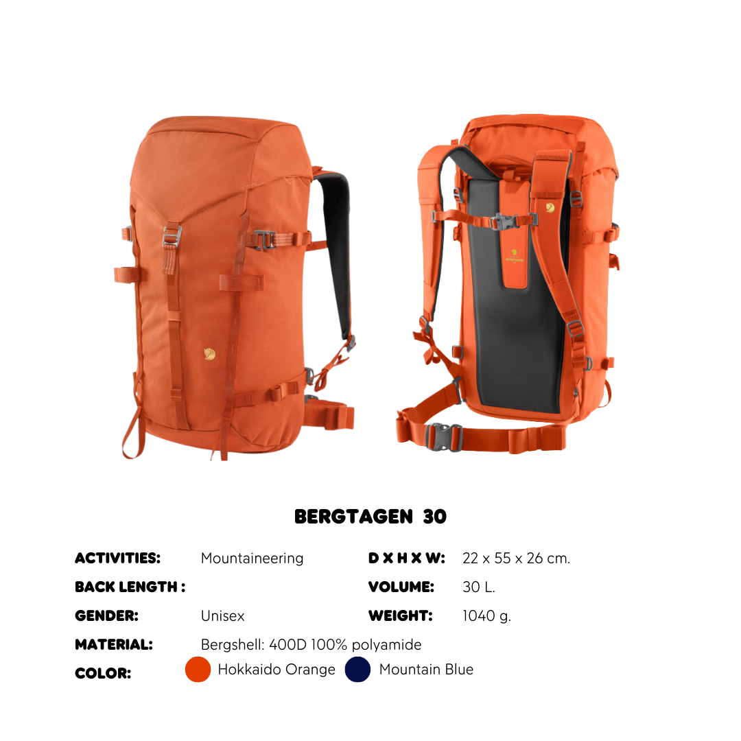 Bergtagen 🏔️ กระเป๋าเป้ปีนหน้าผา กระเป๋าเป้ปีนเขาฉบับมือโปร Technical mountaineering backpack เป้กันน้ำปีนเขา กระเป๋าสะพายหลังเดินป่า กระเป๋าเดินป่า กระเป๋าแบ็คแพ็ค สำหรับทริปที่ต้องการความคล่องตัว และสมบุกสมบัน