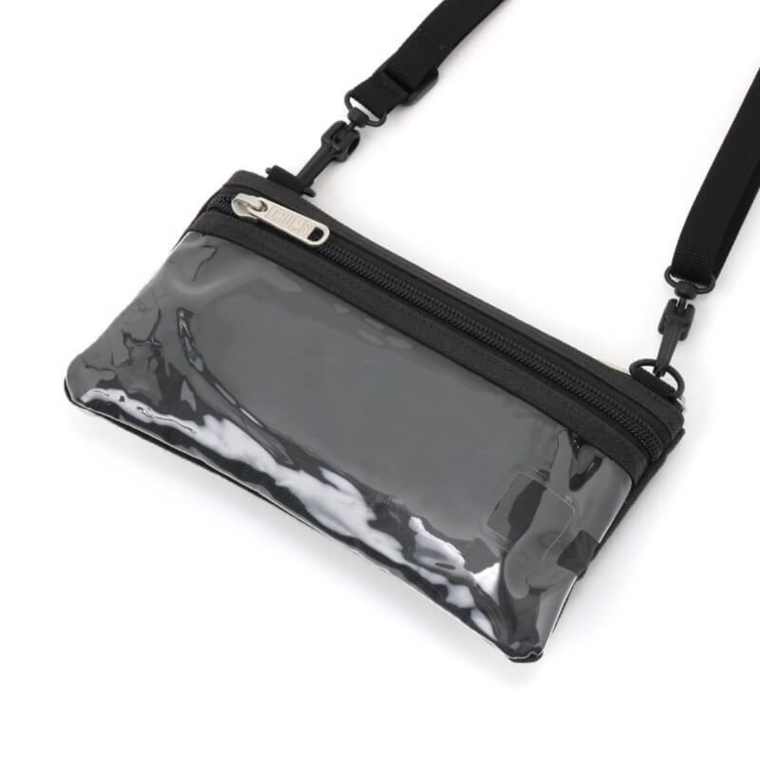 ・ ด้านหลังมีไวนิลใสสำหรับใส่สมาร์ทโฟน และสามารถใช้สมาร์ทโฟนได้จากด้านบนกระเป๋า (ไม่รองรับฟังก์ชันตรวจสอบลายนิ้วมือ)