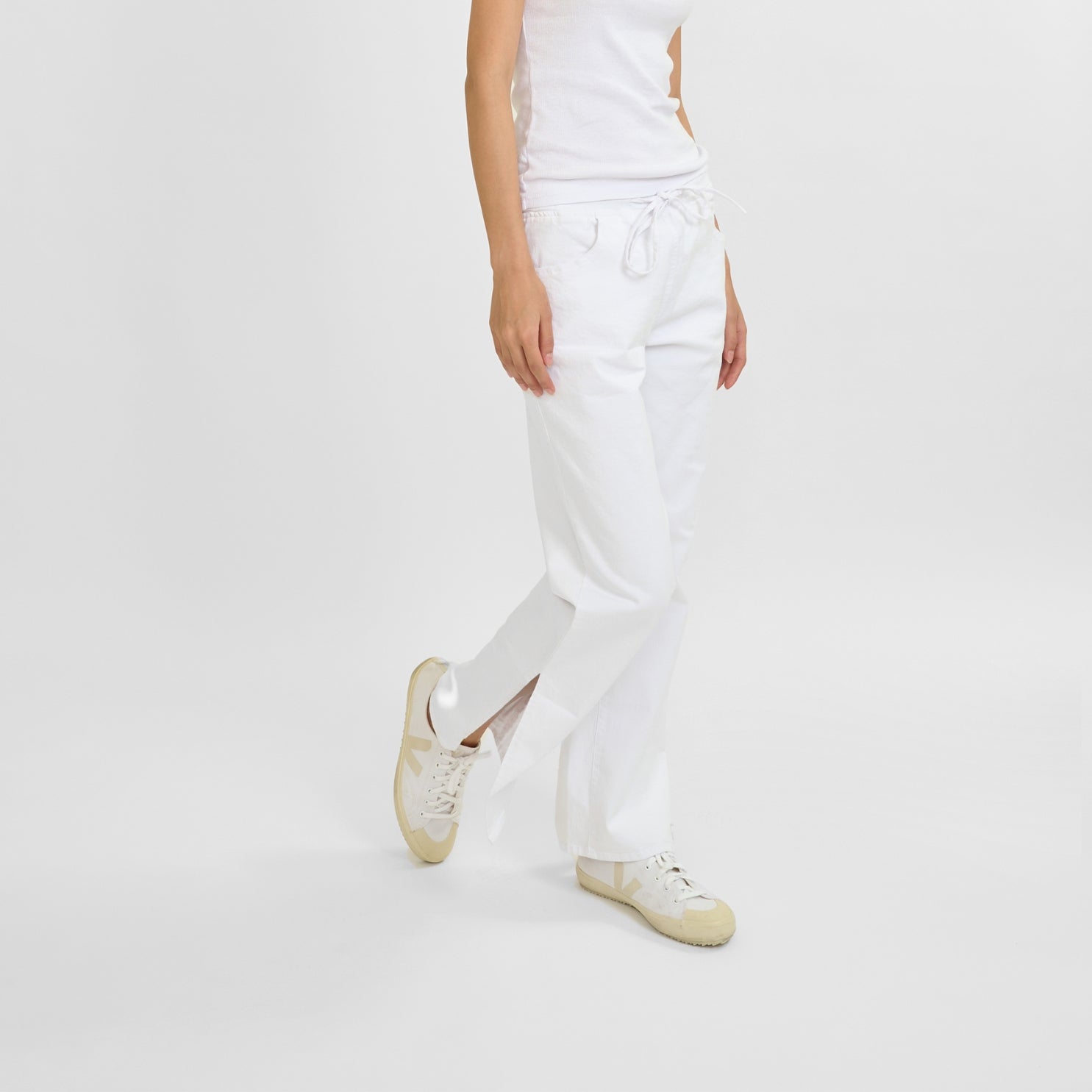 Cozy Lose Fit & Wide Leg Drawstring🤍กางเกงยีนส์ยืด ทรงหลวม ขากว้าง ทรงตรง ดีเทลผ่าขา ออกมาด้วยสีขาวสะอาด รุ่นนี้เป็นเป็นยีนส์เอวเชือก ที่ให้คุณผู้หญิงใส่เป็นเอวสูงหรือเอวต่ำก็ได้ ได้ลุคสบายๆ สไตล์ Minimal Cozy เป็นกางเกงให้สาวๆได้ใส่แมทช์ได้ง่ายๆ ใส่ได้ทุกวัน